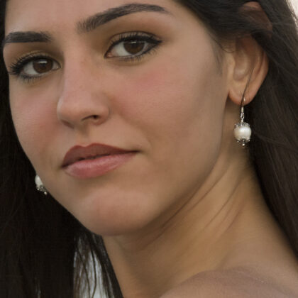 Silver dangle earrings with Sardinian peacocks and stone “PUZONEDDOS”