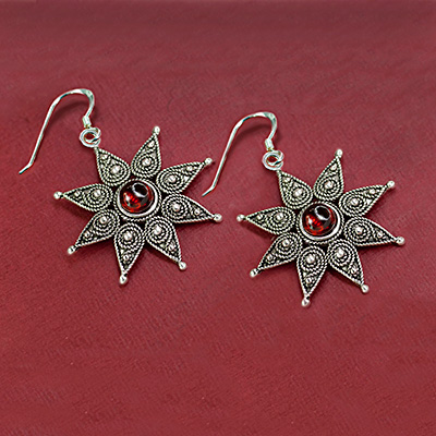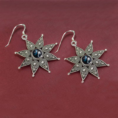 Orecchini pendenti a stella in filigrana d’argento e pietra “ISTEDDU”