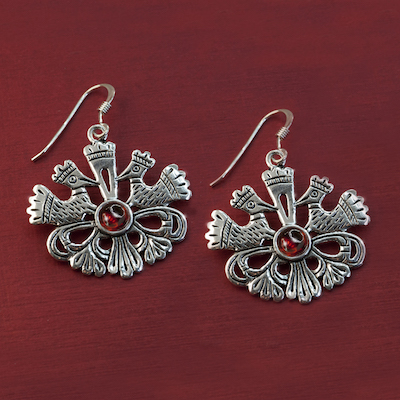 Orecchini pendenti con pavoncelle sarde in argento e pietra “PUZONES”