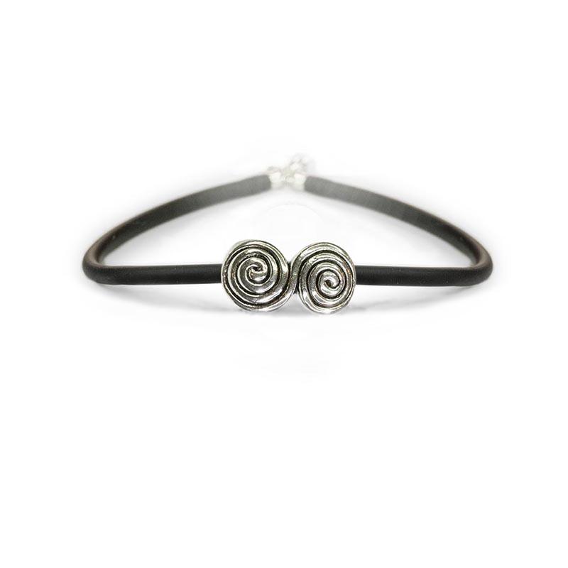 Bracciale in argento e caucciu “DOPPIA SPIRALE DI BONORVA”