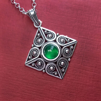 GAVOI – Ciondolo quadrato in filigrana d’argento con pietra incastonata
