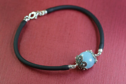 Bracciale con pietra in argento e caucciu “KOKKO”