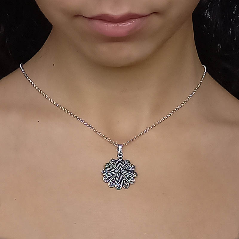 E’ corredato di catenina giunchiglio tradizionale da 43 cm in argento 925.