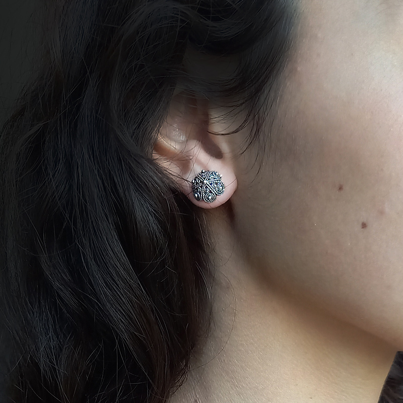 Ninnolos, Orecchini LoboLa forma più classica del bottone sardo composto da petali realizzati con fili e grani in argento.