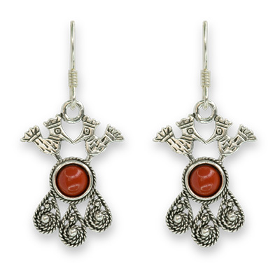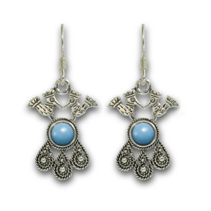 Orecchini pendenti con pavoncelle sarde in argento e pietra “PUZONES”