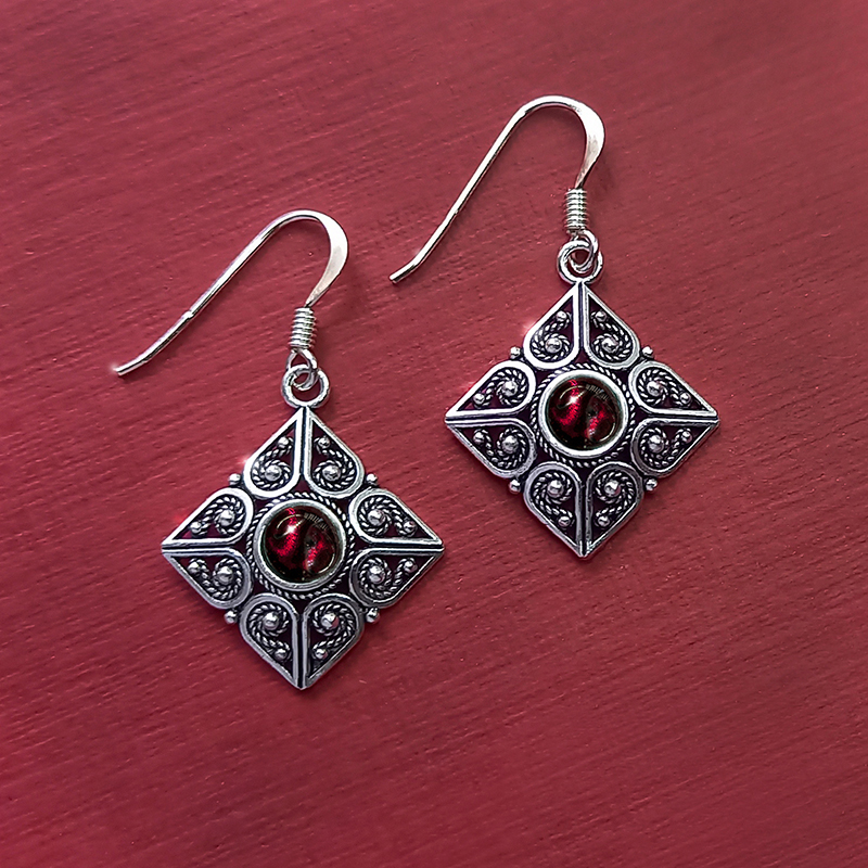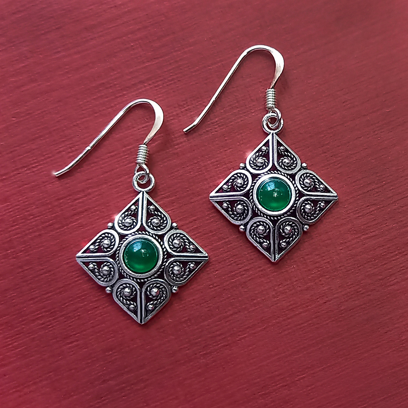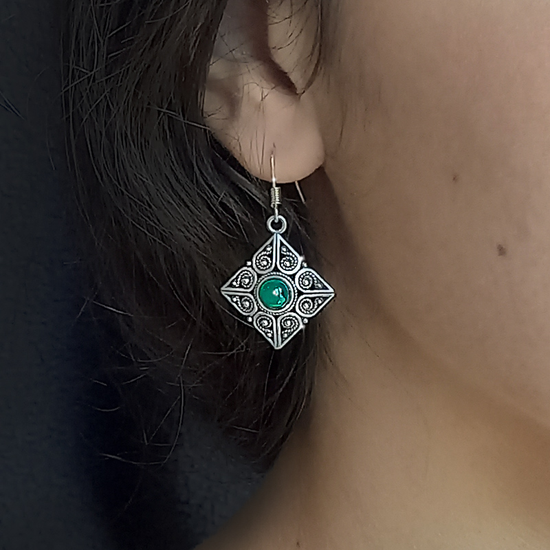 GAVOI – Orecchini pendenti quadrati in filigrana d’argento con pietra incastonata