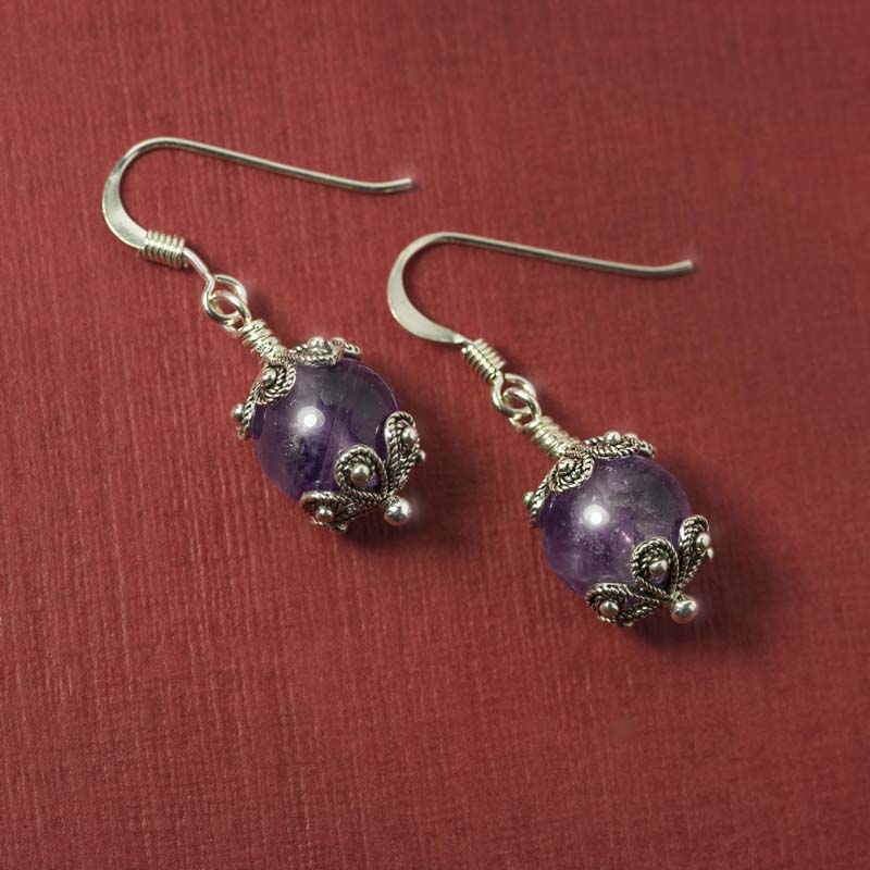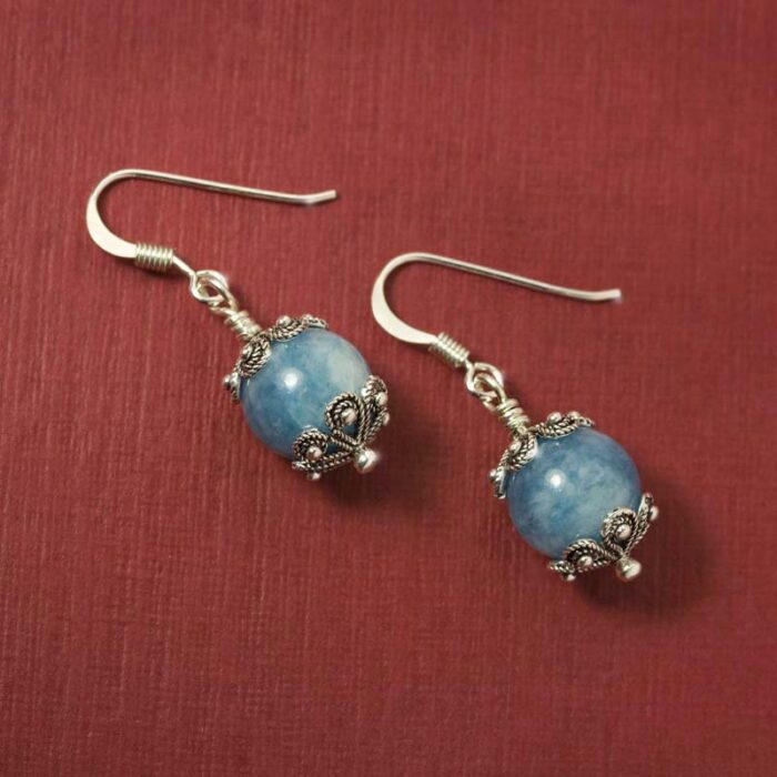I nostri orecchini kokko sono disponibili in tre varianti di pietra e colore: con pietra onice nera, angelite turchese e ametista viola di diametro 8 cm.