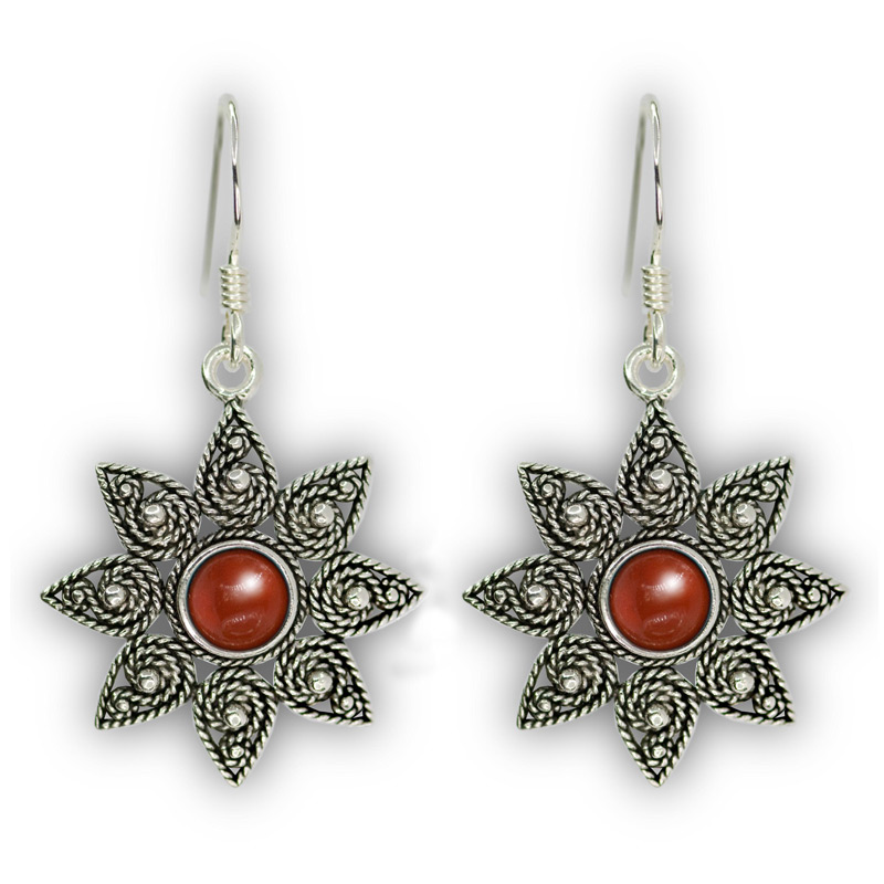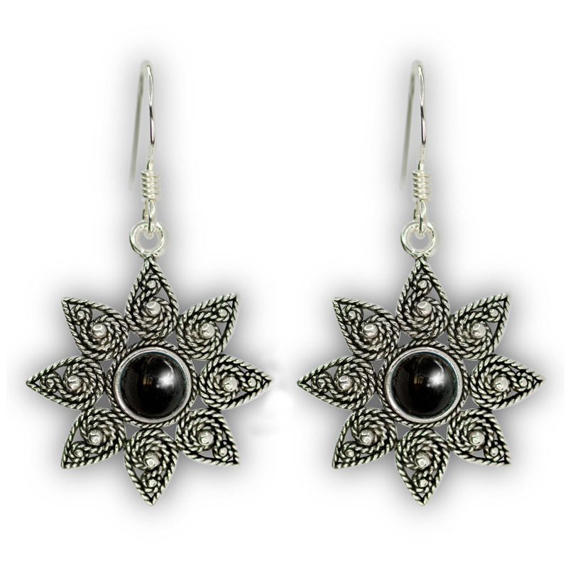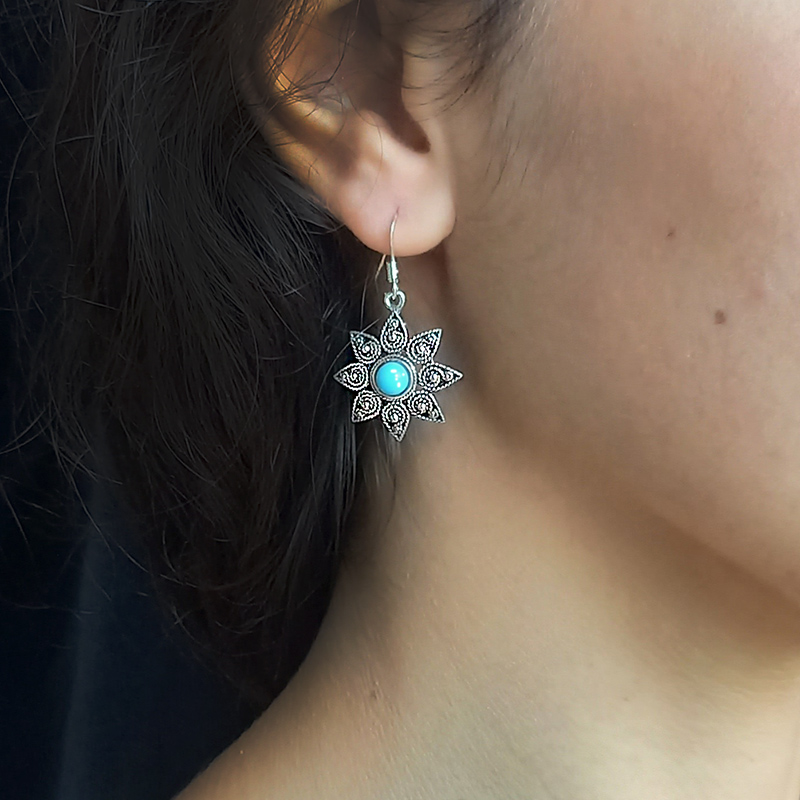 Orecchini pendenti a stella in filigrana d’argento e pietra “ISTEDDU”